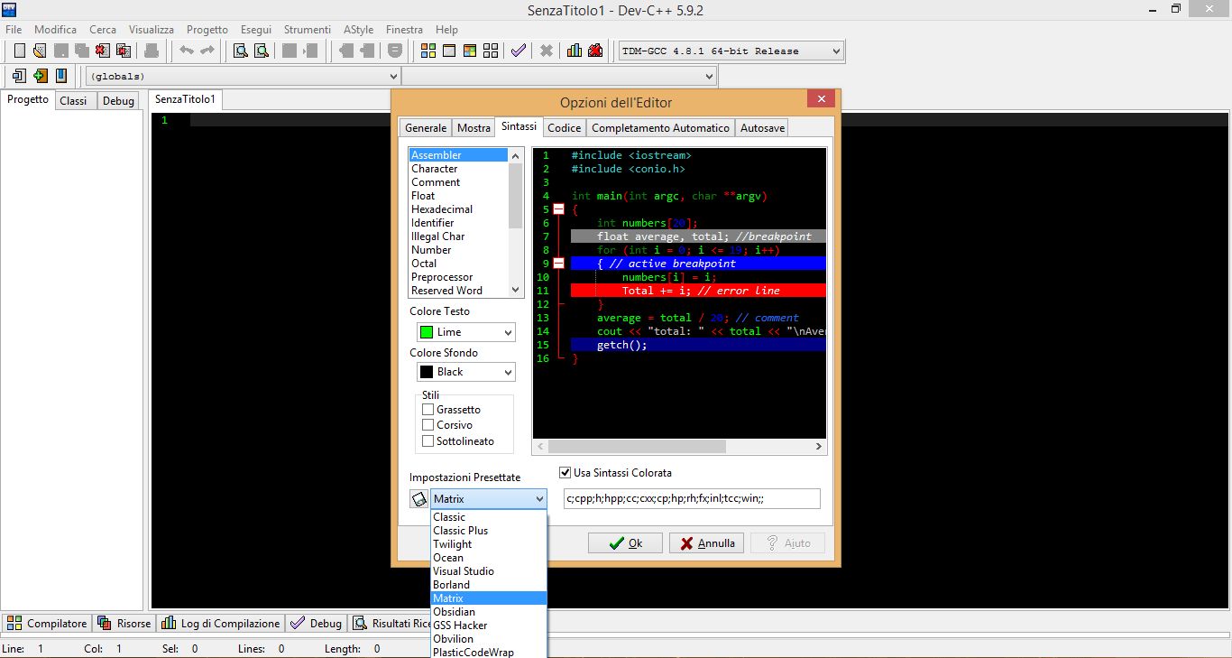 Dev-C++ è un software di programmazione IDE (Integrated Developmet Enviroment) distribuito con licenza GNU e utilizzato per lo sviluppo del C/C++