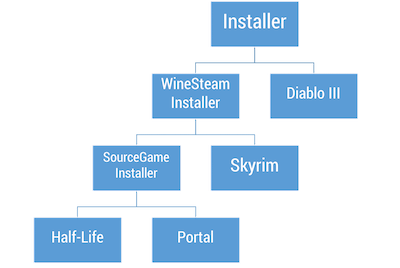 Gli script (o installatori) sono scritti in Python. Qui sarà possibile scrivere liberamente lo script come si fa nella versione 4 di PlayOnLinux. Tuttavia, vediamo nuovi concetti di modelli installatori.