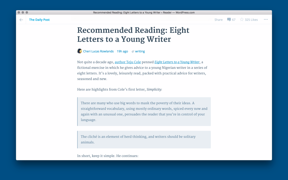 Per tutti i dettagli relativi alla nuova interfaccia Calypso di WordPress.com vi invito a leggere il post di presentazione realizzato direttamente dal blog di Matt Mullenweg, poi vi consiglio di dare un’occhiata pure alla pagina dedicata su developer.wordpress.com e per finire questa sfilza di link/consiglio vi invito a leggere pure la storia relativa al progetto Calypso WordPress.